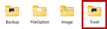 文書を保存してバックアップファイルが作成されたとき、同時にそのバックアップファイルが増えすぎて混乱しないようにある程度整理され、不要と判断されたものはくずかごフォルダへ移動します。くずかごフォルダは Trash という名前のフォルダです。くずかごはファイル数が2,000を超えると古いものから削除されます。