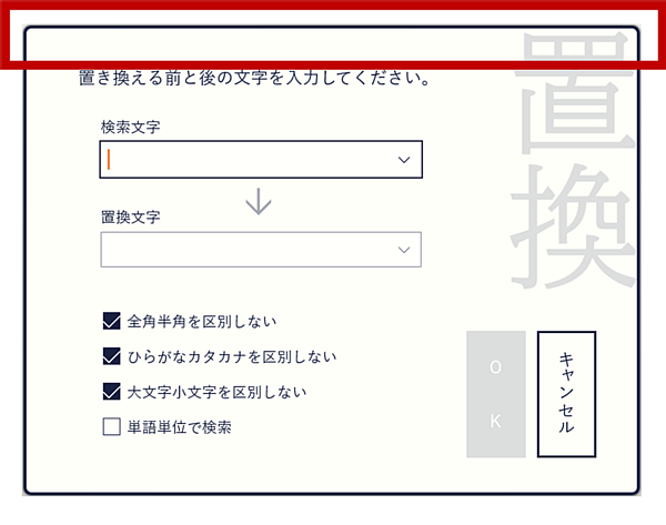 ダイアログウィンドウではキャプションバーが表示されませんが、ウィンドウ上部をドラッグすることでウィンドウの位置を変えることが可能です。