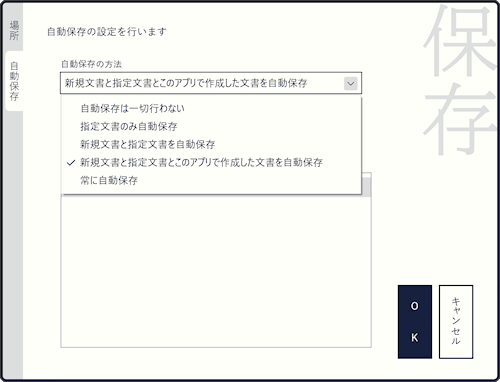 テキストエディタに限らずほとんどのデータ作成アプリは編集したファイルを保存するかどうか確認します。もちろん O's Editor3 でもそのような使い方ができますが、いっぽうでファイルの保存をすべてアプリに任せる自動保存も可能になっています。O's